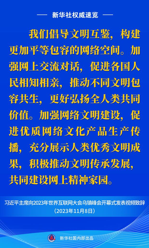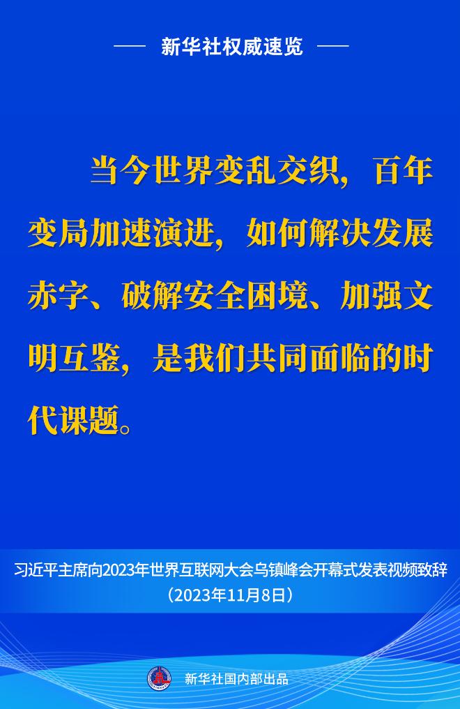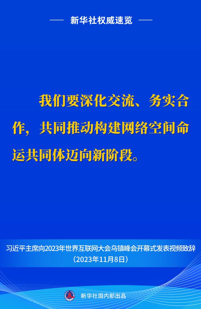 11月8日上午,國家主席習近平向2023年世界互聯(lián)網(wǎng)大會烏鎮(zhèn)峰會開幕式發(fā)表視頻致辭。一起來看金句。