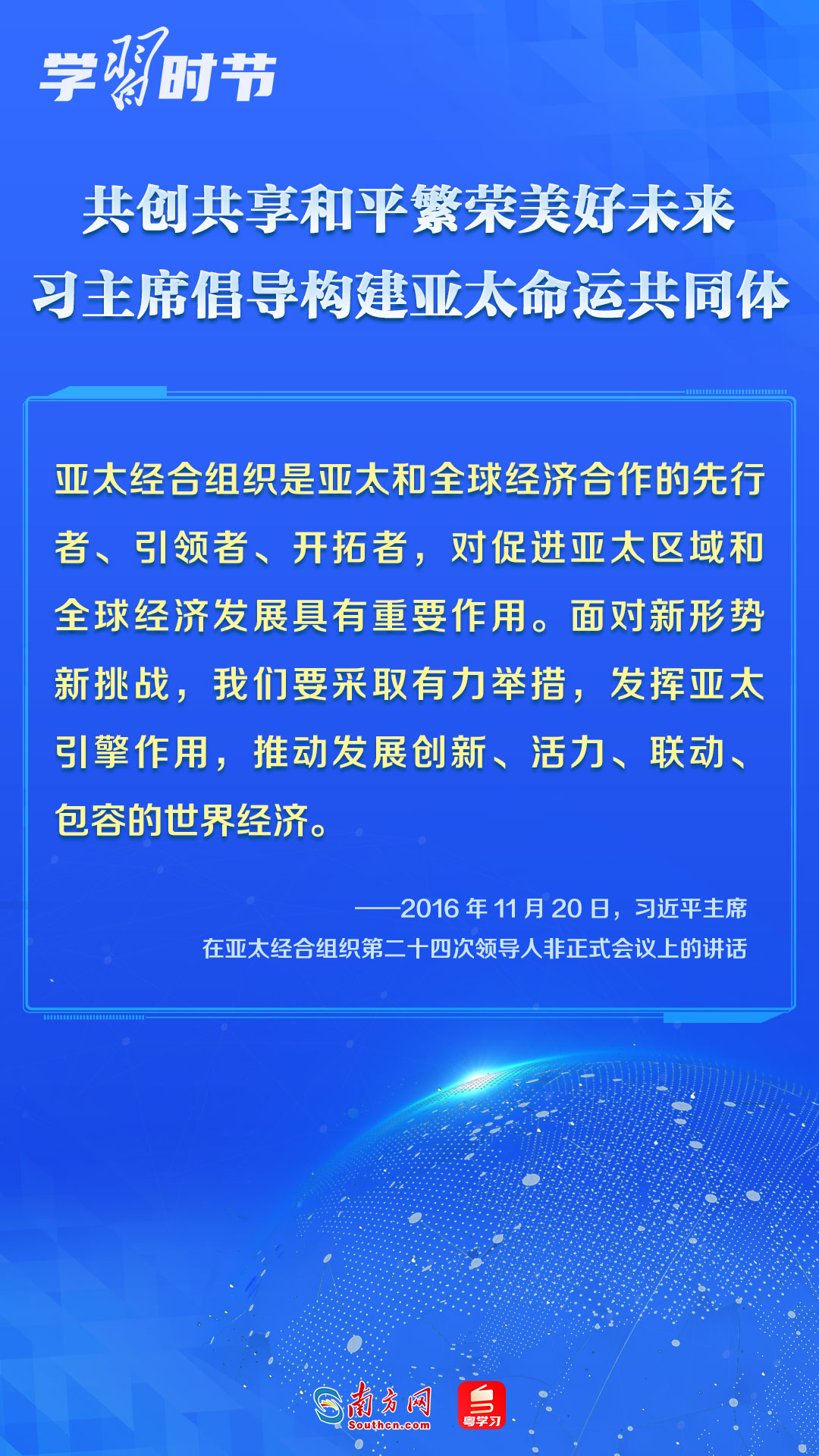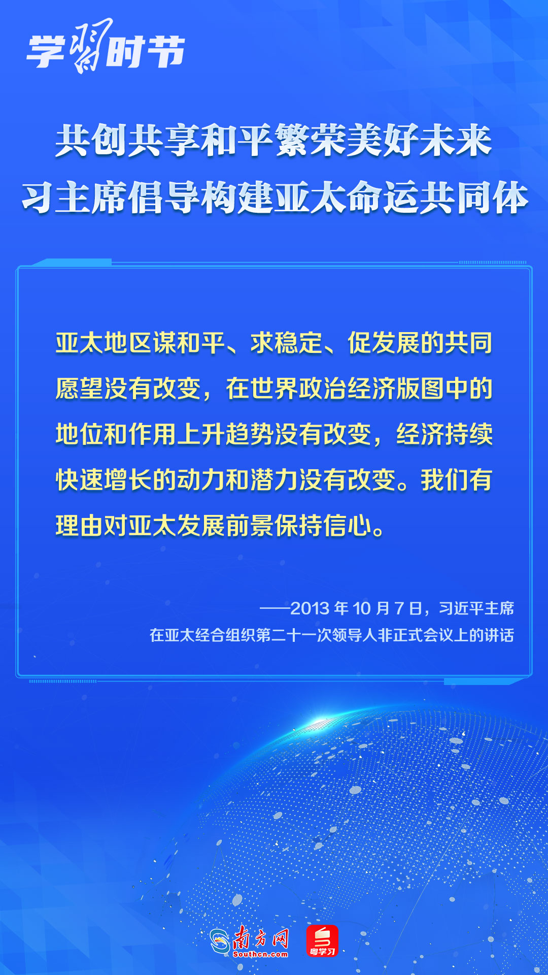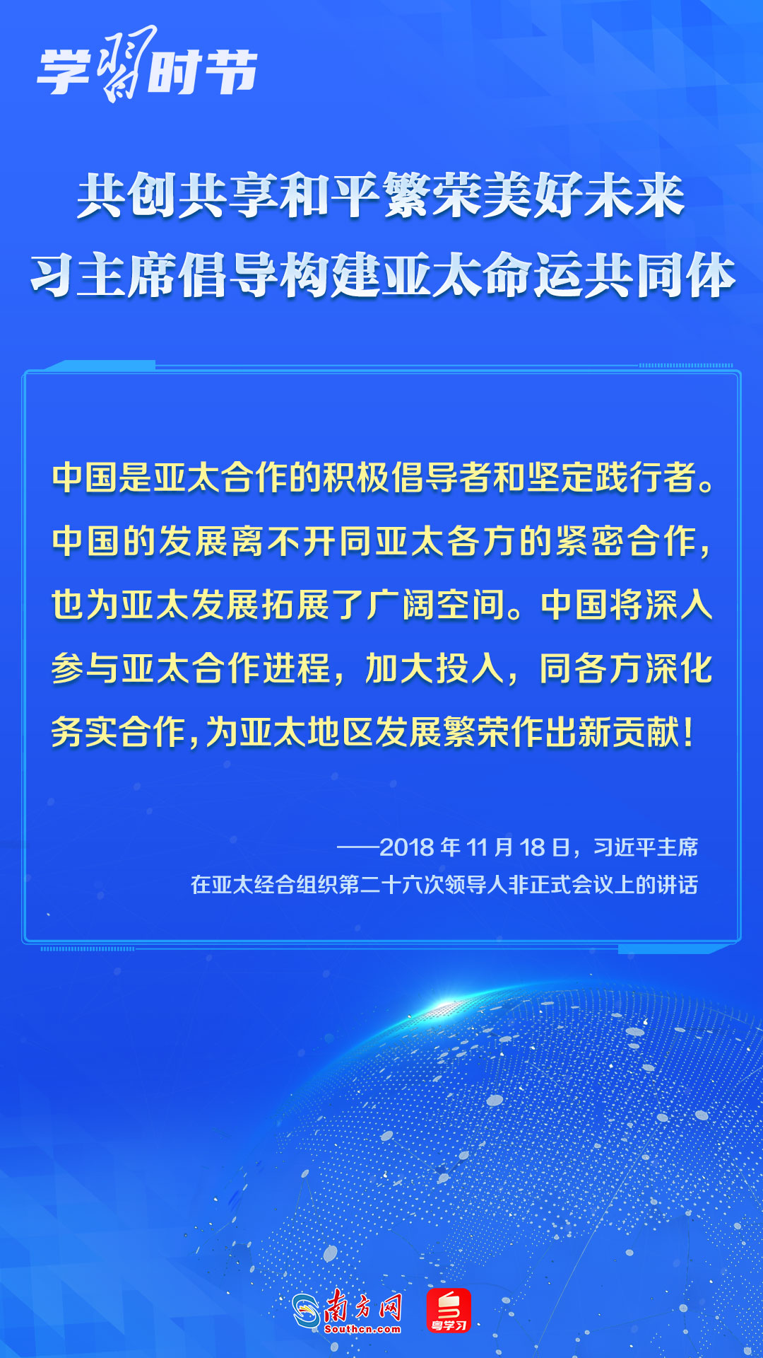 中國一直是APEC的積極參與者、貢獻(xiàn)者,為推動(dòng)建設(shè)亞太大家庭發(fā)揮了重要作用。習(xí)近平主席多次出席APEC會議,以中國主張促進(jìn)亞太合作,以中國貢獻(xiàn)推動(dòng)亞太發(fā)展,以中國智慧凝聚亞太共識,多次闡述構(gòu)建開放包容、創(chuàng)新增長、互聯(lián)互通、合作共贏的亞太命運(yùn)共同體的理念主張和重大意義,讓我們一同學(xué)習(xí)。