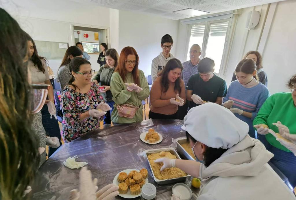 2023年9月29日,烏拉圭共和國大學(xué)孔子學(xué)院師生一起做月餅,歡度中秋節(jié)。