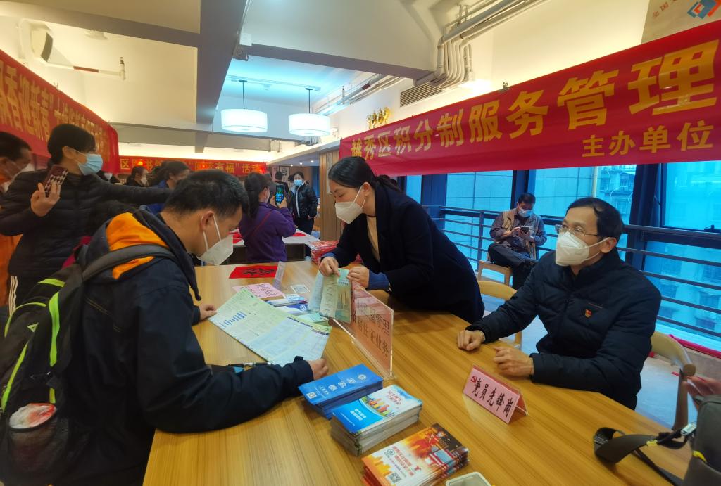 廣州市越秀區(qū)大塘街黨群服務(wù)中心工作人員為群眾提供居住證辦理相關(guān)政策咨詢服務(wù)。(受訪者供圖)