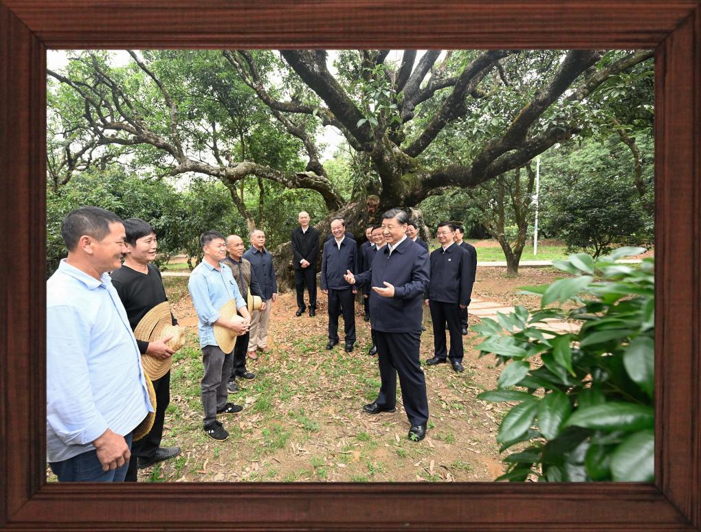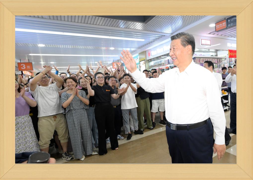 12月31日晚,國家主席習近平發(fā)表二〇二四年新年賀詞。 推近、定格、銘記,透過總書記身后書架上的一張張照片,我們記住過去,也對未來充滿信心。 不變的情懷 幾張老照片,在書架上擺放多年,人們已經非常熟悉。 習近平同志青年時期的軍裝照,連續(xù)第3年出現,擺放在書架醒目位置。 這令人不由得想起10年前的一段暖心對話—— 2013年11月,湖南十八洞村,村民石拔三老人見到了來此考察的習近平總書記。 “怎么稱呼您?”“我是人民的勤務員。” 歲月流轉,初心不改。從照片上的青年,到人民的勤務員,“我將無我,不負人民”的赤子情懷始終如一。 家庭是個人溫馨的港灣。習近平同志一家三口和父親習仲勛在一起、習近平同志在福州時帶女兒玩的照片,自總書記第一次發(fā)表新年賀詞以來,就一直擺在書架上。 2023年,又有幾張新的總書記家庭照片映入眼簾。 一張是習仲勛同志的單人照。 2023年是習仲勛同志誕辰110周年。習近平總書記從小深受父親影響,形容父親“像一頭老黃牛,為中國人民默默地耕耘著”,“這也激勵著我將自己的畢生精力投入到為人民群眾服務的事業(yè)中,報效養(yǎng)育我的錦繡中華和父老鄉(xiāng)親”。 同夫人彭麗媛在深圳錦繡中華景區(qū)的留影、習近平夫婦懷抱女兒的合影,也是第一次出現在書架上。 天下之本在家。習近平總書記指出,家庭和睦則社會安定,家庭幸福則社會祥和,家庭文明則社會文明。 修身、齊家,家好、國更好。習近平總書記率先垂范,對家人的責任、對家風的傳承、對家教的認真令人動容。 不停的步履 11張2023年拍攝的照片,留下習近平總書記過去一年治國理政的經典瞬間。 2023年,習近平總書記共進行了16次國內考察,出訪4次,在國內數十次會晤到訪的各國各界人士。 將鏡頭拉遠,總書記的身影不辭萬里—— 向南,習近平總書記來到位于我國大陸最南端的廣東省湛江市徐聞縣;向北,考察中國最北端的黑龍江省漠河市北極村;向西,視頻連線守衛(wèi)祖國西大門的新疆軍區(qū)紅其拉甫邊防連執(zhí)勤哨所。 這張同紅其拉甫邊防連執(zhí)勤哨所等進行視頻通話的拼版照片,正是書架上的新照片之一。 “黃河九曲、長江奔流,總讓人心潮澎湃、豪情滿懷。”2023年,長江流經的11個省市里,習近平總書記考察了4個;黃河沿線的9個省區(qū)里,考察了5個;大運河涉及的8個省市里,考察了5個。 北瀕長江、南臨廬山、東枕鄱湖,江西九江的中國石化九江分公司位置特殊。10月,習近平總書記來到這里時,員工們圍攏過來紛紛向總書記問好。 總書記親切地說,希望你們按照黨中央對新型工業(yè)化的部署要求,堅持綠色、智能方向,扎扎實實、奮發(fā)進取,為保障國家能源安全、推動石化工業(yè)高質量發(fā)展作出新貢獻。 “追求卓越 勇創(chuàng)一流”——墻上的標語仿佛大家的回應。這一幕,也被相機定格。 將鏡頭推近,總書記的關切無微不至—— 這是對生產的關心。 萬畝甘蔗林中,習近平總書記同身著民族服裝的蔗農走在一起,大家的笑容像甘蔗一樣甜??倳洝盀楸U蠂姨菢I(yè)安全、促進蔗農增收致富發(fā)揮更大作用”的叮嚀深入人心。 古老荔枝樹下,總書記同現場技術人員親切交流,指出要著力做好“土特產”文章,以產業(yè)振興促進鄉(xiāng)村全面振興。 這是對企業(yè)的關注。 9月,習近平總書記來到浙江義烏國際商貿城考察,人們紛紛從商鋪中走出來,掌聲、問候聲、歡呼聲此起彼伏。 面對商戶、小企業(yè)主們,總書記點贊道:“義烏小商品闖出了大市場、做成了大產業(yè),走到這一步很了不起,每個人都是參與者、建設者、貢獻者。” 這是對人民的關懷。 2023年,華北、黃淮等地出現極端降雨,引發(fā)洪澇和地質災害。 北方入冬之際,習近平總書記來到北京、河北受災較重的相關地區(qū),看望慰問受災群眾。書架上這張照片,便是總書記在北京門頭溝妙峰山鎮(zhèn)水峪嘴村考察時留下的。 一度被洪水淹沒的水峪嘴村已經修葺一新,村民家中窗明幾凈、暖氣充足。 少年兒童的成長,習近平總書記一直牽掛在心,書架上多次出現總書記同孩子們在一起的場景。 2023年精選的,是一張習近平總書記在北京育英學校的照片。 看到孩子們正在學生農場勞動,總書記關心地說:“希望同學們從‘學農’中感受到農作的艱辛和農民的不易,從小養(yǎng)成熱愛勞動、珍愛糧食、尊重自然的良好習慣,為建設美麗中國作貢獻?!?/p> 不竭的力量 國徽高懸,熠熠生輝。這是一個歷史性的瞬間。 2023年3月10日,北京人民大會堂。全票當選國家主席、中央軍委主席的習近平,左手撫按《中華人民共和國憲法》,右手舉拳,面向近3000名全國人大代表,鄭重宣誓。 錚錚誓言,響徹人民大會堂,回蕩在960萬平方公里土地上,回蕩在億萬中華兒女心中。 重溫激動人心的一刻,我們信心十足、精神百倍。 信心,來自堅強的領導核心—— 書架上,擺放著習近平總書記在內蒙古自治區(qū)巴彥淖爾市臨河區(qū)國營新華林場考察時的一張照片。 走進正在治理的沙地,總書記感慨:“ 像‘三北’防護林體系建設這樣的重大生態(tài)工程,只有在中國共產黨領導下才能干成。三北地區(qū)生態(tài)非常脆弱,防沙治沙是一個長期的歷史任務,我們必須持續(xù)抓好這項工作,對得起我們的祖先和后代。” 言辭懇切。一個對于時間的理解“以百年