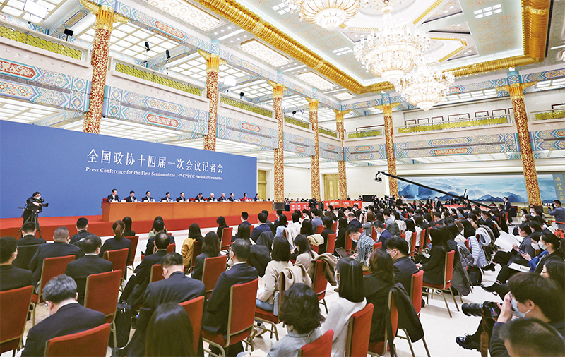 中國共產(chǎn)黨領(lǐng)導(dǎo)的多黨合作和政治協(xié)商制度作為我國一項基本政治制度,是中國共產(chǎn)黨、中國人民和各民主黨派、無黨派人士的偉大政治創(chuàng)造,是從中國土壤中生長出來的新型政黨制度。長期以來,各民主黨派同中國共產(chǎn)黨長期共存、互相監(jiān)督、肝膽相照、榮辱與共,履行民主監(jiān)督職能,在幫助中國共產(chǎn)黨科學(xué)決策、民主決策、依法決策上作出了重要貢獻。圖為2023年3月5日,全國政協(xié)十四屆一次會議在北京人民大會堂舉行民主黨派中央和全國工商聯(lián)領(lǐng)導(dǎo)人記者會。 新華社記者 曹燦/攝