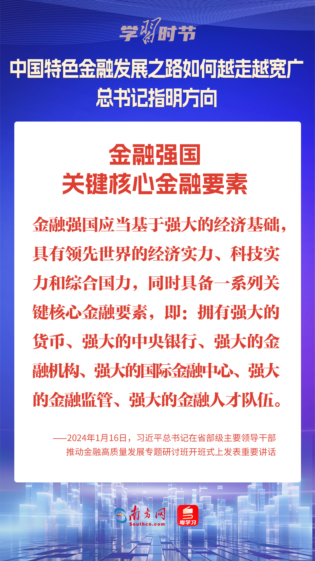 1月16日,中共中央總書記、國家主席、中央軍委主席習(xí)近平在省部級(jí)主要領(lǐng)導(dǎo)干部推動(dòng)金融高質(zhì)量發(fā)展專題研討班開班式上發(fā)表重要講話,為中國特色金融發(fā)展之路指明方向。