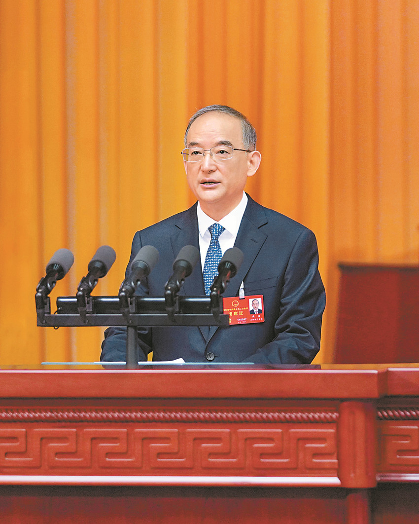 黃強代表省人民政府作工作報告。