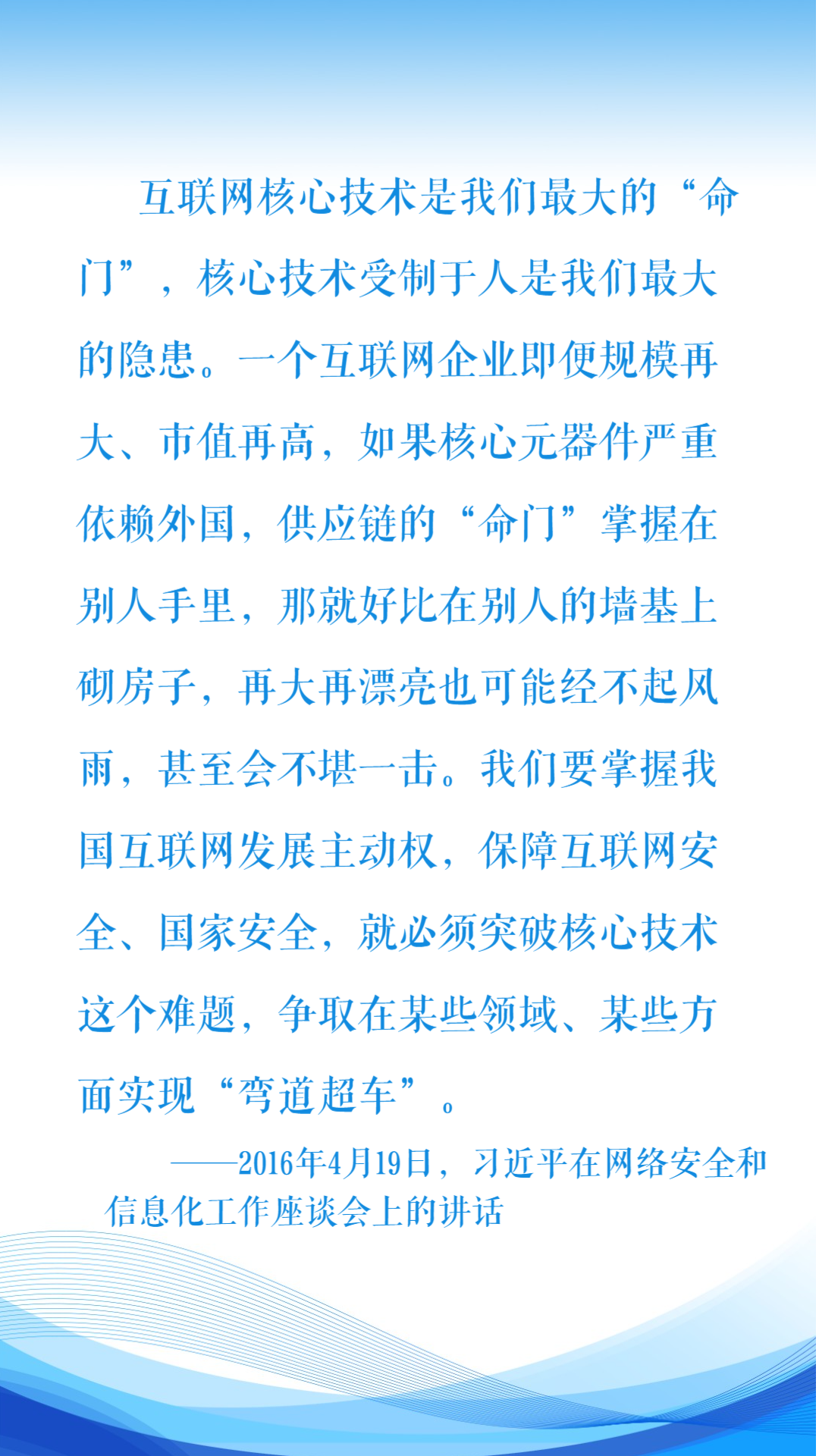 網(wǎng)信事業(yè),代表著新的生產(chǎn)力和新的發(fā)展方向。網(wǎng)信領(lǐng)域的競(jìng)爭(zhēng),也是不同國(guó)家數(shù)字關(guān)鍵核心技術(shù)自主創(chuàng)新能力的競(jìng)爭(zhēng)。要在網(wǎng)絡(luò)時(shí)代保障國(guó)家安全,要推進(jìn)中國(guó)式現(xiàn)代化,就必須牽住數(shù)字關(guān)鍵核心技術(shù)自主創(chuàng)新這個(gè)“牛鼻子”,解決核心技術(shù)受制于人的隱患,提升自主創(chuàng)新能力,努力實(shí)現(xiàn)高水平科技自立自強(qiáng)。(肖聰聰)