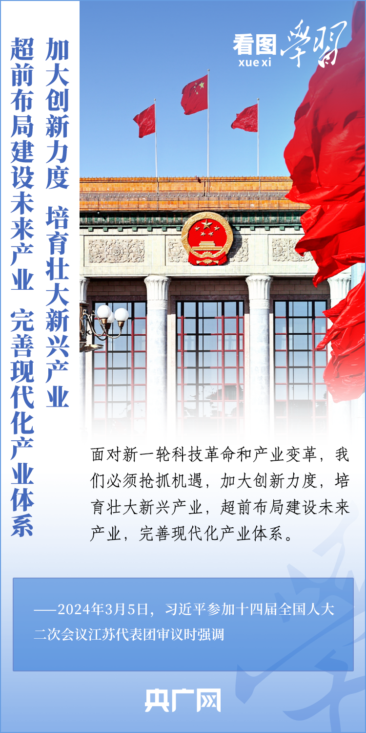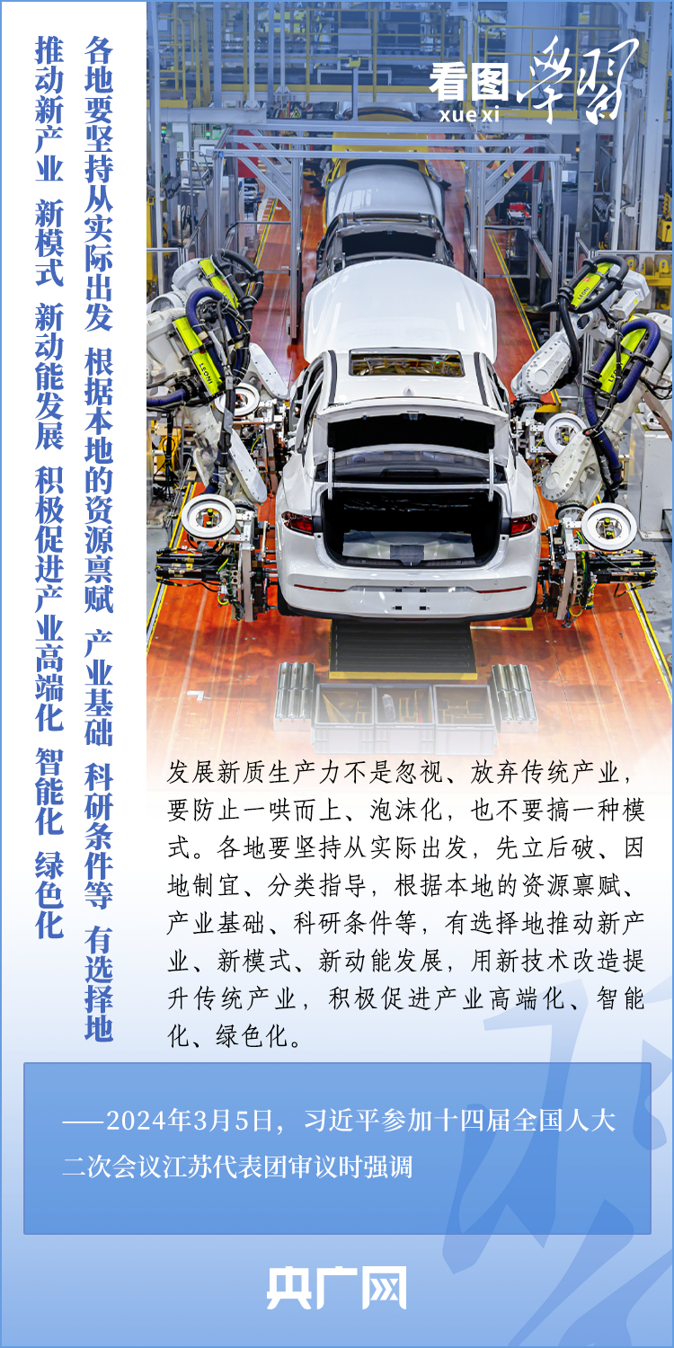 3月5日,十四屆全國人大二次會議正式開幕。5日下午,習(xí)近平總書記參加他所在的江蘇代表團(tuán)審議時(shí)強(qiáng)調(diào),要牢牢把握高質(zhì)量發(fā)展這個(gè)首要任務(wù),因地制宜發(fā)展新質(zhì)生產(chǎn)力。發(fā)展新質(zhì)生產(chǎn)力不是忽視、放棄傳統(tǒng)產(chǎn)業(yè),要防止一哄而上、泡沫化,也不要搞一種模式。一起來學(xué)習(xí)!