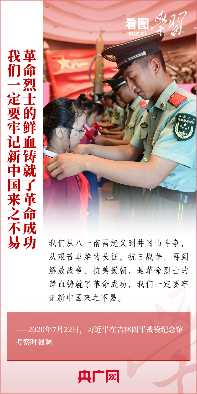 緬懷革命前輩,告慰先烈英靈。黨的十八大以來,習(xí)近平總書記多次在重大活動(dòng)、赴地方調(diào)研時(shí),或深情追憶革命前輩、英雄烈士,或向革命紀(jì)念場館禮敬鮮花、關(guān)心看望英烈親屬??倳浢銊?lì)大家要繼承革命先烈遺志,把他們流血犧牲打下的紅色江山守護(hù)好、建設(shè)好,以實(shí)現(xiàn)中華民族偉大復(fù)興來告慰革命前輩和先烈。