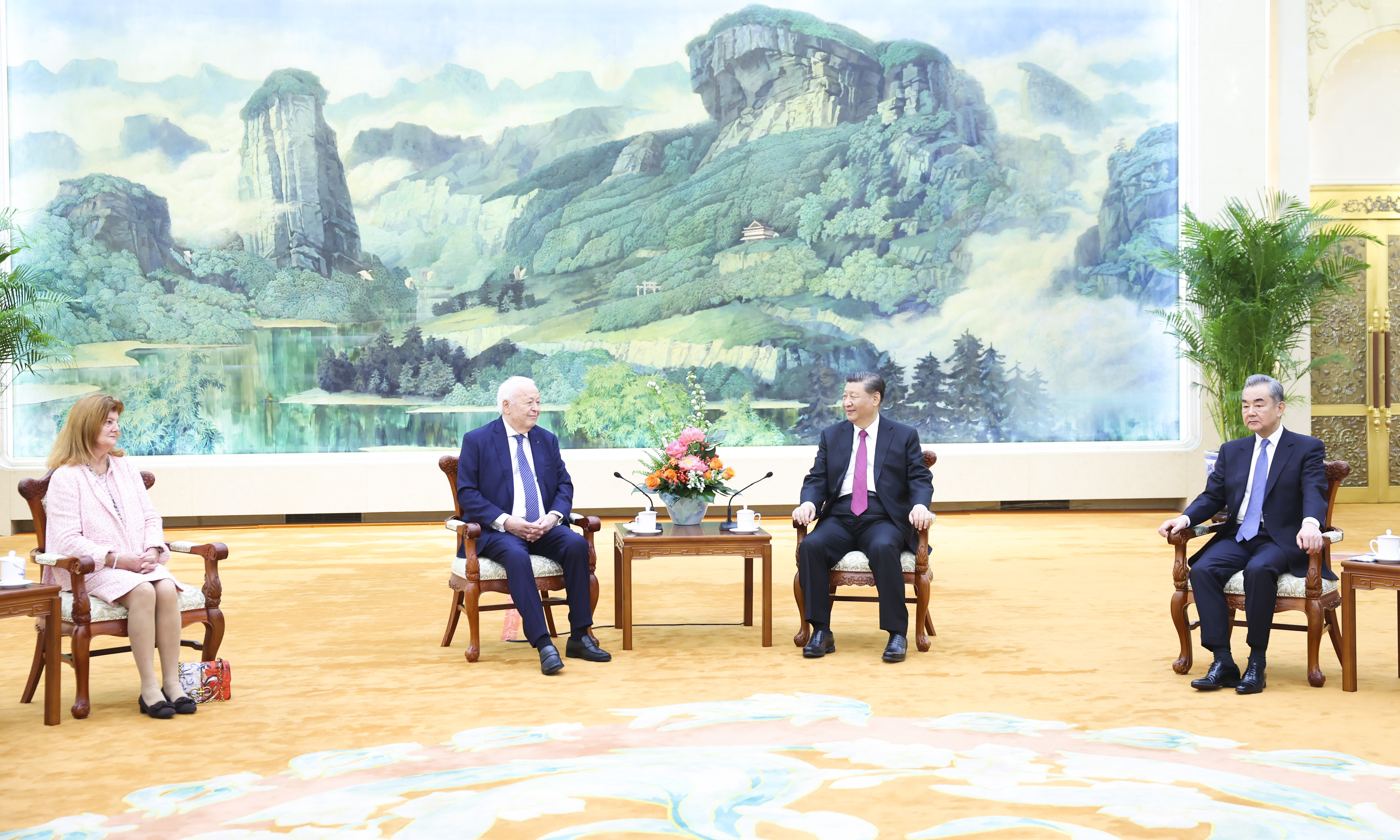 4月8日,國家主席習(xí)近平在北京人民大會堂會見法國梅里?;饡飨防锇7驄D。新華社記者 黃敬文 攝
