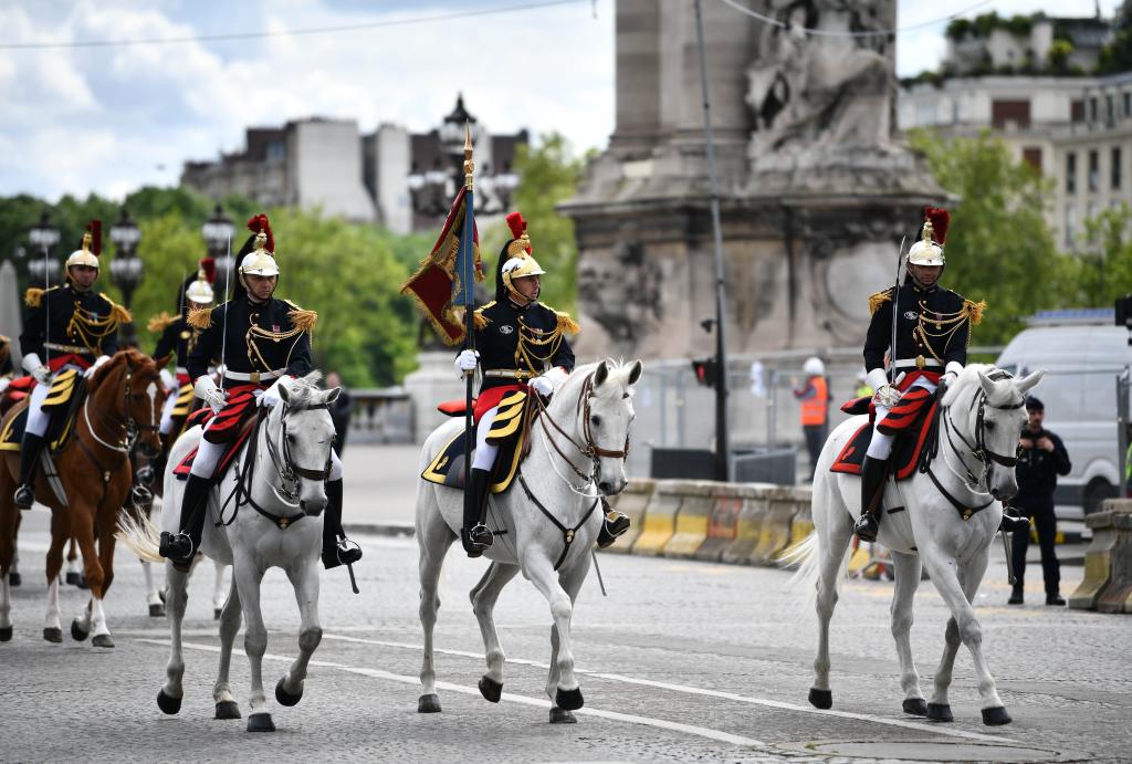 ??歡迎儀式后,習(xí)近平和夫人彭麗媛在共和國衛(wèi)隊(duì)148名騎兵組成的禮兵馬隊(duì)和摩托車隊(duì)護(hù)衛(wèi)下,乘車前往愛麗舍宮。