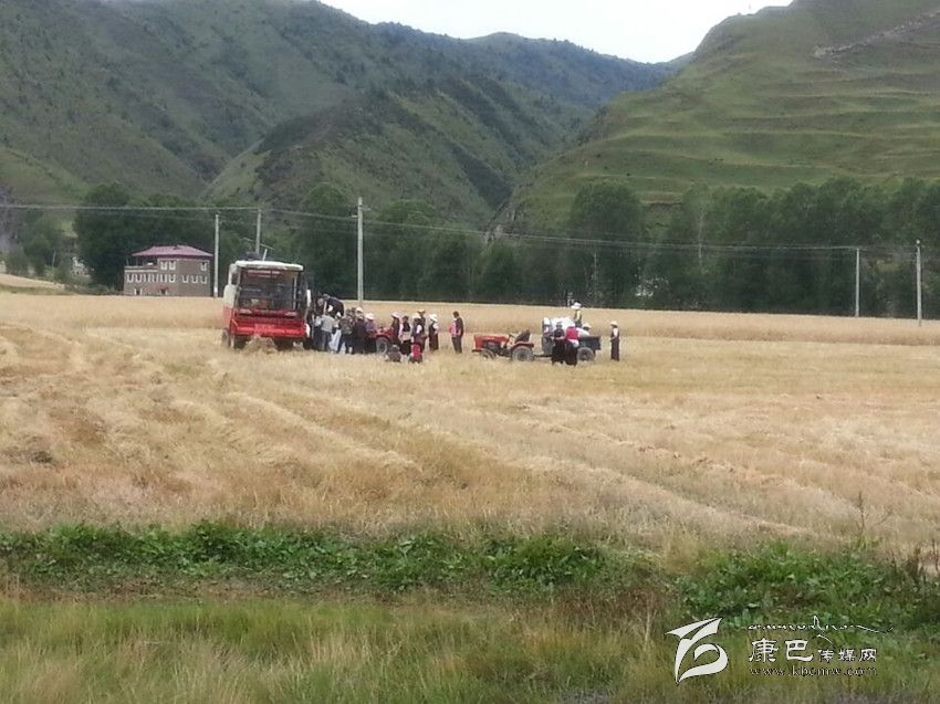 本網(wǎng)訊(孫學(xué)花 文/圖)近日,當(dāng)筆者來到康定縣新都橋時,一片片金黃的麥田展現(xiàn)在眼前,收割機(jī)不停的工作場面,拖拉機(jī)忙碌的來回在天地合牧民家中,豐收的喜悅嵌在牧民的臉上。“現(xiàn)在正是收割的季節(jié),我們根本不用人工,全是機(jī)器設(shè)備,割糧食用的是收割機(jī)是政府給了補(bǔ)貼的,運(yùn)輸不用人工,都是用拖拉機(jī)拉,我們只需要上個車就完了,麥子曬干了直接用脫粒機(jī),磨面直接用電磨,可以說完全是農(nóng)機(jī)一體化運(yùn)作,我們老百姓是越來越輕松了,糧食產(chǎn)量比以前大幅度提高,因?yàn)槲覀儸F(xiàn)在用科學(xué)種田,用復(fù)合肥、地膜等科學(xué)技術(shù),日子越來越幸福。”瓦澤鄉(xiāng)瓦澤村村民降初高興地分享著他家豐收的喜悅。
