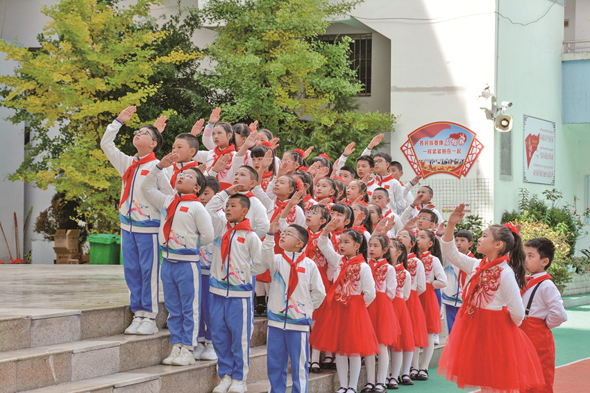 活躍提升組織生活也是少先隊工作強基固本的重要環(huán)節(jié)。通過健全少先隊階梯式成長激勵體系;全面實施分批入隊、分段教育、分級激勵和推優(yōu)入團;依托“紅領巾獎章”覆蓋隊中教育全過程等措施,全市14至15周歲新入團團員經(jīng)由少先隊組織推優(yōu)入團達100%。此外,全覆蓋開展“開學第一堂隊課”、主題隊課活動,規(guī)范舉行入隊儀式等,讓少先隊員組織意識和光榮感全面增強。