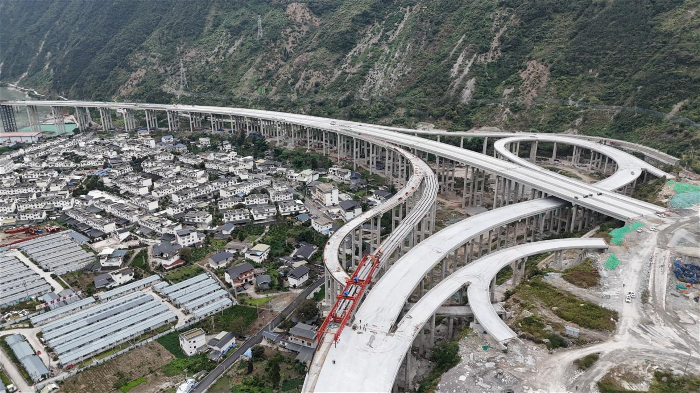 此外,海螺溝綜合體占地394畝,跨省道211施工,工程體量大,工程結(jié)構(gòu)形式復(fù)雜,上下交叉施工作業(yè)面多,加之項目靠近“9·5”瀘定地震核心區(qū)域,余震不斷,施工難度大,安全風(fēng)險高。在項目建設(shè)中,需搭設(shè)高度超40多米的滿堂支架,保障9條互通立交匝道交錯建設(shè)。面對難題,參建各方科學(xué)謀劃,對架橋機進行改造,調(diào)整梁板架設(shè)順序,提前組織安排50多跨現(xiàn)澆箱梁的施工工序、工藝,保障了穿插在現(xiàn)澆箱梁中的預(yù)制梁板順利架設(shè)。在“9·5”瀘定地震后,項目在一個月內(nèi)完成全面復(fù)工復(fù)產(chǎn),并通過加大人員與設(shè)備投入,18聯(lián)共51跨現(xiàn)澆箱梁施工時間從2年縮短至1年,追回了施工工期,有力推進了建設(shè)任務(wù)。