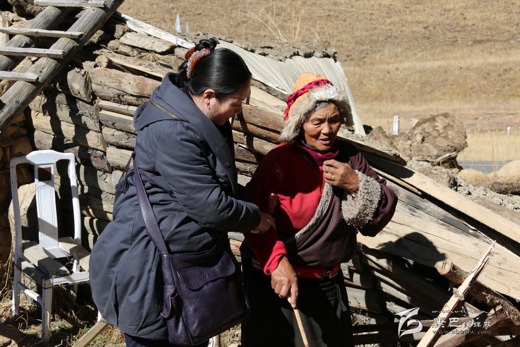 由于降措和妻子其米拉姆的腿腳不便,都患有風(fēng)濕,李萍便扶著老人,在她的帶領(lǐng)下走進房屋查看房屋損毀情況,臨別時還不斷叮囑老人注意安全,暫時不要在房屋內(nèi)居住。