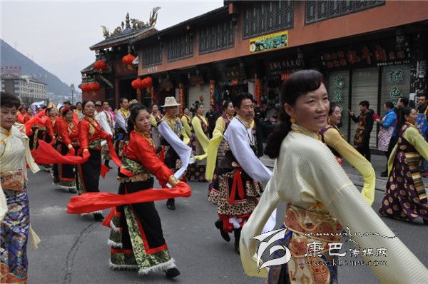 由瀘定縣弦子隊(duì)、金甘孜、色達(dá)協(xié)會(huì)、康定駐瀘協(xié)會(huì)組成的藏族方隊(duì);卡迪伲拉、北段社區(qū)、夕陽(yáng)紅、瀘橋鎮(zhèn)演出隊(duì)組成的彝族方隊(duì);企業(yè)協(xié)會(huì)和教師協(xié)會(huì)組成的扇子方隊(duì);巾幗腰鼓隊(duì)和南段社區(qū)瀘園快樂(lè)隊(duì)組成的鑼鼓方隊(duì)等演出人員穿上節(jié)日的盛裝,與全縣人民喜迎新春。