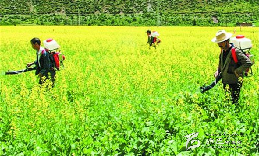 村民在精心管護油菜。