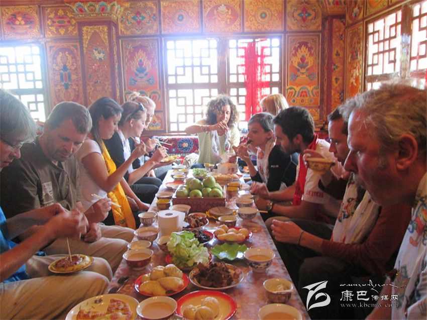 外國游客在道孚民居接待點就餐。