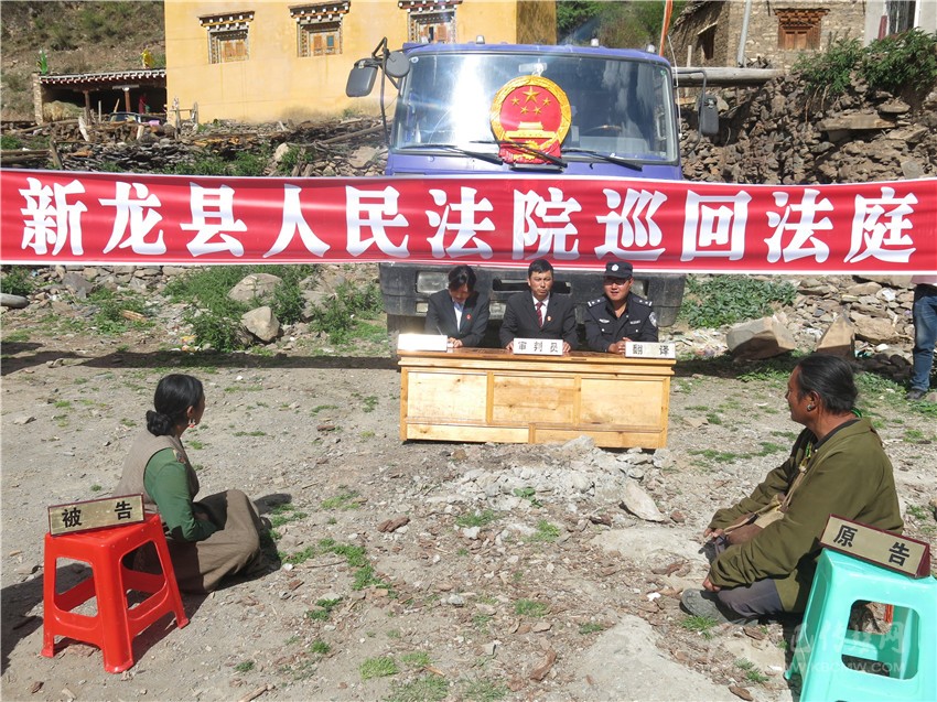 五年來,新龍縣法院堅(jiān)持以全州法院開展的人民法庭“五進(jìn)”活動(dòng)為契機(jī),在每一次活動(dòng)開展中近民、親民,體現(xiàn)人民法院的親和力和公信力。積極開展“送法下鄉(xiāng)”、“以案說法”和法律咨詢活動(dòng),不斷提高農(nóng)牧民群眾學(xué)法、守法、用法、敬法的意識(shí)。在宣傳國家基本法律的基礎(chǔ)上,按照 “當(dāng)?shù)厥裁磫栴}突出,就宣傳什么法律”的原則,下鄉(xiāng)入村為老百姓進(jìn)行了47次法制宣傳,參與農(nóng)牧民群眾37000余人次,發(fā)放了3320多份藏漢雙語的法律宣傳小冊子;在全縣范圍形成以鄉(xiāng)鎮(zhèn)為主,輻射村、社區(qū)、牧場的巡回審判模式,建立案件定點(diǎn)收案點(diǎn)18個(gè),矛盾糾紛定點(diǎn)調(diào)處點(diǎn)18個(gè),有效促進(jìn)了社會(huì)矛盾糾紛的多元化有效解決。同時(shí),該院還充分利用微博、媒體、手機(jī)報(bào)和簡報(bào)等多種形式進(jìn)行宣傳。