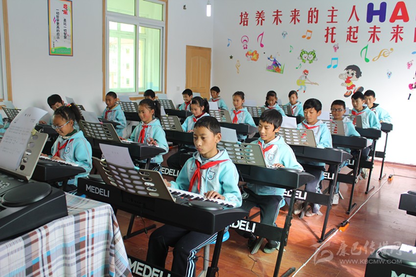 在甘孜縣城關(guān)第一完全小學(xué)的教室里,音樂教師正在教授孩子們識(shí)別五線譜,孩子們用稚嫩的雙手在電子琴鍵盤上彈奏著音樂的同時(shí),嘴里還不斷的唱著“哆唻咪發(fā)嗦”。放學(xué)時(shí),孩子們還沉浸在音樂的余韻中,興奮地給前來接送上課的父母?jìng)冎v述著課堂上的趣事。學(xué)生家長(zhǎng)翁登不勝唏噓:“大娃娃讀一完小的時(shí)候,只有語文數(shù)學(xué)和藏文可以學(xué),其他的課沒有專門的老師教,現(xiàn)在小女兒好安逸,還有專門的音樂老師教他們唱歌,現(xiàn)在的老師真的很厲害!”