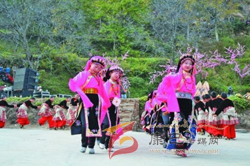 10月26日,在甲居藏寨,處處洋溢著豐收和歡樂的氣氛,人們扶老攜幼,身著節(jié)日的盛裝走到一起,來共同慶祝丹巴嘉絨風(fēng)情節(jié)的順利召開。在一塊空地中,搭建了臨時(shí)的舞臺,看臺上,幾座古碉模型傲然挺立,在不遠(yuǎn)處,一座古碉矗立在一座小山包上,與古碉模型遙相呼應(yīng)、相映成趣。上午9時(shí)40分,當(dāng)節(jié)目主持人宣布嘉絨風(fēng)情節(jié)正式開始時(shí),一束束搖曳的煙花向空中飛去,在空中炸響后,散發(fā)出五顏六色的煙霧,其中有的還幻化成幾多小小的降落傘,就像多多盛開的鮮花在空中綻放。演出現(xiàn)場前的大地和遠(yuǎn)處的小山坡上到處都站滿了熱情的觀眾,合著禮花的爆裂時(shí)的響聲,將手中的小紅旗展開,高舉過頭頂,有節(jié)奏的左右搖動,霎時(shí)間,整個(gè)現(xiàn)場成為了紅色的海洋。