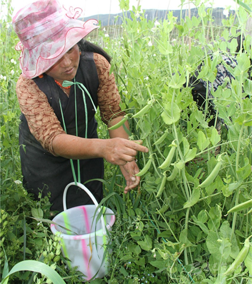 7月13日,甜豆可以開始采摘了。村民多吉志瑪說:“現(xiàn)在我不管有多忙,首先都要到基地采摘甜豆,因?yàn)槟鞘俏覀兇迕撠氈赂坏南M?。?fù)責(zé)裝筐的昂旺澤仁現(xiàn)已裝13筐,每次要裝20多筐,早已大汗淋漓的他,看到一車車甜豆運(yùn)走,心里美滋滋的,他算了筆賬,甜豆收成是青稞收益的近10倍。李云峰介紹說,現(xiàn)在基地的甜豆幾乎是天天采摘,每次采摘約750公斤左右,到目前為止,已采摘1萬公斤,合作社將有近6萬元的收入。要是管理得好,畝產(chǎn)可達(dá)到1000多公斤,采到9月底沒有問題。