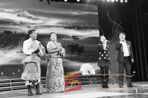 雙流節(jié)目中最有亮點(diǎn)的是川劇《人間好》和《水龍吟·黃龍溪街市》。和藏戲一樣,川劇是中國(guó)戲曲寶庫(kù)中的一顆光彩照人的明珠,唐代便有“蜀戲冠天下”的說(shuō)法。今天,川劇《人間好》與《巴塘藏戲》先后登場(chǎng),展現(xiàn)了雙巴兩地對(duì)非遺文化的傳承精神。《人間好》用高腔、胡琴、昆腔、燈戲、彈戲五種聲腔,表達(dá)了人們對(duì)美好生活的歌頌與向往。意味雋永的唱腔,引人入勝的表演,幽默風(fēng)趣的唱詞,充滿(mǎn)鮮明的地方色彩和濃郁的生活氣息。最令觀眾感興趣的是,具有象征意義又妙趣橫生的川劇臉譜與粗獷而富有民族特色的藏戲臉譜交相輝映,不經(jīng)意間反映出了本次活動(dòng)的主題:感恩、互助、團(tuán)結(jié)?!端堃?middot;黃龍溪街市》節(jié)目以川劇特技變臉將觀眾引入場(chǎng)景,把舞臺(tái)寫(xiě)意與生活再現(xiàn)結(jié)合,著意淡化了純粹歌舞性表演和拼盤(pán)式集合,歌舞、戲曲、技藝等各種川派文化意象配合現(xiàn)代聲音和光電技術(shù),抽象而集中地展示了黃龍溪的茶文化、酒文化、卜筮文化,美人、美酒、美茶、美詩(shī)、美景,流溢出濃濃的川味,演員和觀眾在歷史的長(zhǎng)河中穿梭往來(lái)。