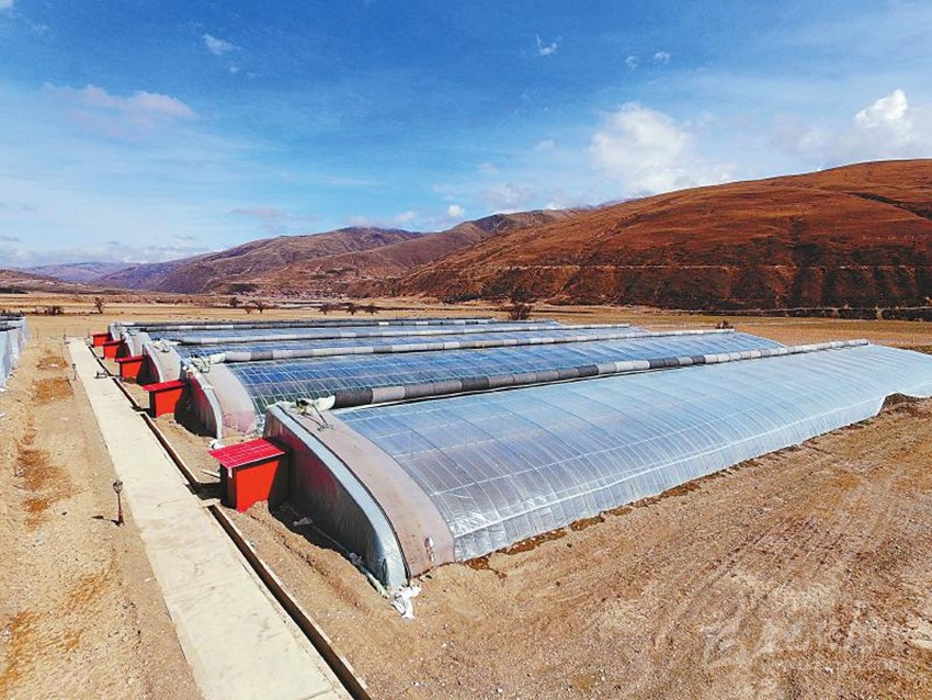爐霍縣創(chuàng)新飛地扶貧模式,在海拔較低地勢平緩的地方建蔬菜大棚發(fā)展產業(yè),助貧困戶脫貧。陳麗 攝