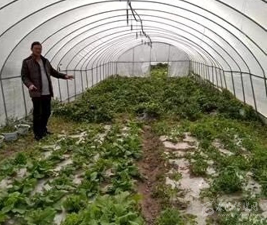 縣農牧科技局人員幫助農民種大棚菜。