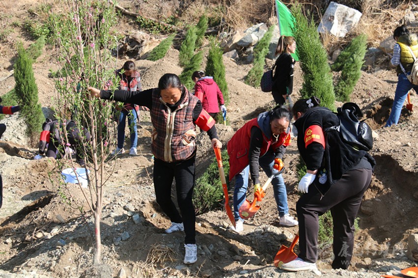 植樹現(xiàn)場熱火朝天。