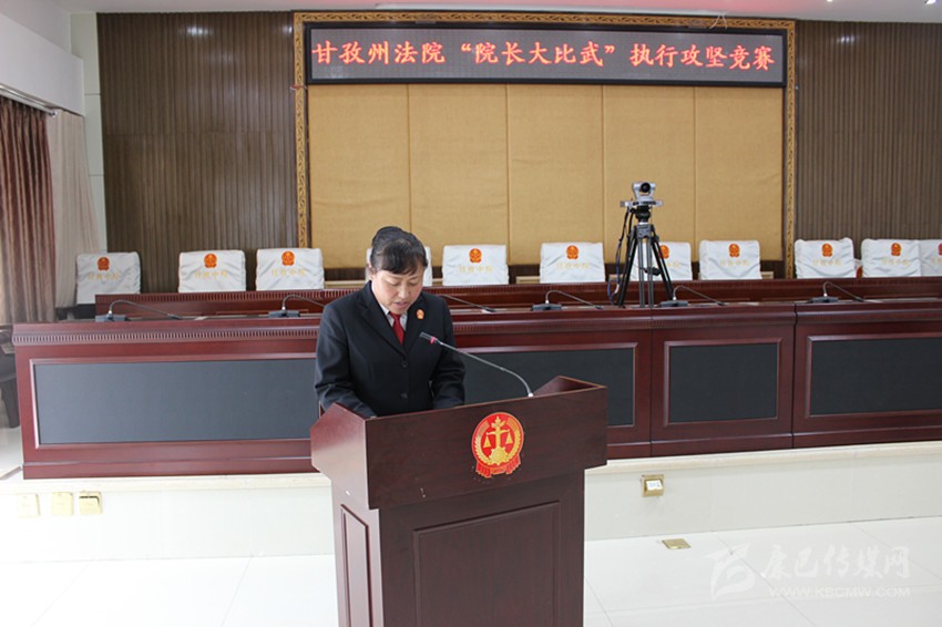 6月8日,全州基層法院“院長大比武”執(zhí)行攻堅競賽在州中級人民法院舉行,瀘定縣人民法院院長鐘天蓉在競賽階段