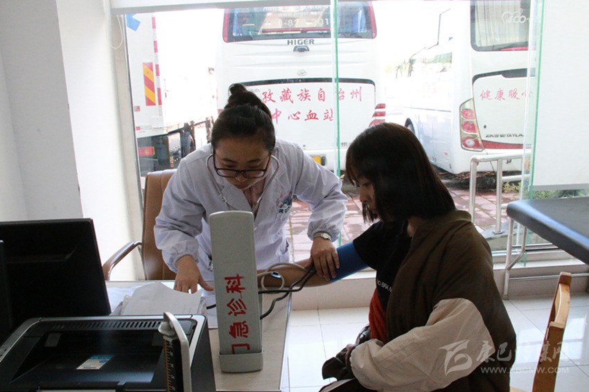 醫(yī)務(wù)人員為患者量血壓。