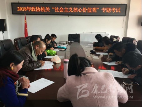 為書面測試廣大干部職工“社會主義核心價值觀”的實踐意義,11月29日下午2:00,2018年石渠縣政協(xié)機關(guān)“社會主義核心價值觀”專題考試,在縣政協(xié)黨組成員、副主席楊國華的監(jiān)考下開始。其書面閉卷筆試為:單項和多項選擇題及簡答“三嚴(yán)三實”與“社會主義核心價值觀”內(nèi)容和論述題:一是結(jié)合藏區(qū)與自己的思想實際及政協(xié)工作特點,有條理的闡述如何開展“社會主義核心價值觀”實踐活動;二是踐行“社會主義核心價值觀”的重大意義及措施、方法等。通過一小時左右的臨場測試,應(yīng)考的政協(xié)機關(guān)干部職工含臨時工、駕駛員、實習(xí)生等,人人均遞交了滿意的答卷。