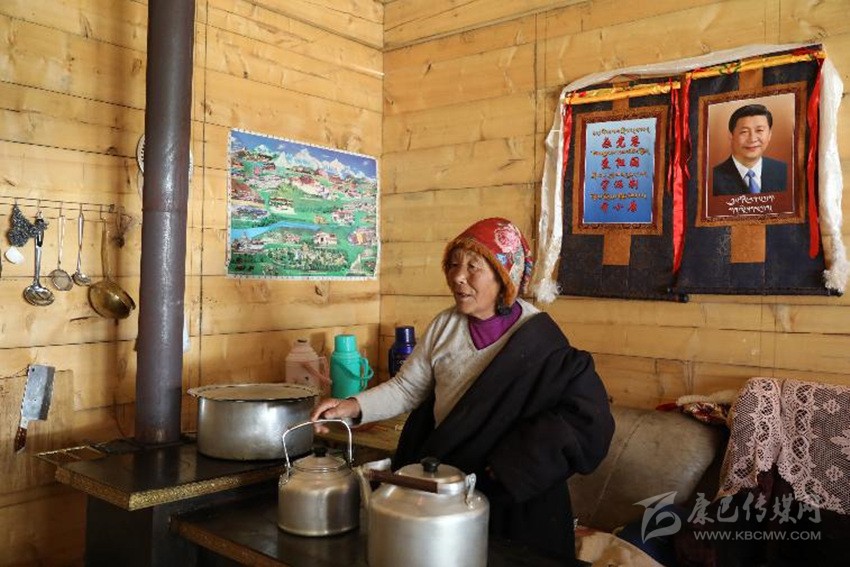 “我是村上第一個(gè)掛習(xí)主席唐卡畫像的脫貧戶!這幅黑白唐卡是我入住新房當(dāng)天掛的;幾天后,畫師又送我一幅彩色的,于是我就把這兩幅唐卡并排掛在客廳里。如今,全村家家戶戶都在客廳里掛上了習(xí)主席彩色唐卡。要是沒有習(xí)主席提出實(shí)施精準(zhǔn)扶貧,恐怕我們現(xiàn)在還住在山上受窮!”11月28日上午,當(dāng)筆者來到距德格縣城37公里的龔埡鄉(xiāng)雨托村采訪時(shí),77歲的建檔立卡貧困戶呷瑪西繞指著習(xí)主席唐卡畫像激動(dòng)地說。