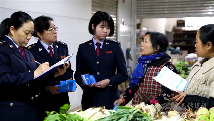 在菜市場(chǎng)宣傳“減稅降費(fèi)”。