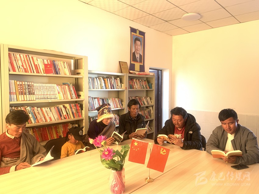 “平時(shí)只要有空,我們就到這里來聚會(huì),看看書、聊聊天,有時(shí)村里會(huì)組織大家集中收看宣傳黨委政府政策的宣傳片,讓我們能及時(shí)了解國家方針政策。”4月13日午飯后,色達(dá)縣大則鄉(xiāng)厚門村的文化活動(dòng)室,和往常一樣,又陸陸續(xù)續(xù)迎來三三兩兩的村民們。一樓的圖書室,幾位村民正在安靜地看書,有漢語的,也有藏語的,他們身后兩面的書架上,收藏了上萬本各類書籍,其中藏語書籍占了一半以上,還有一些光碟,都是歷次中央、省、州重大會(huì)議的宣講內(nèi)容。在二樓的會(huì)客室,49歲的村民擁巴和鄉(xiāng)親們正熱烈地聊著今年脫貧攻堅(jiān)的形勢。