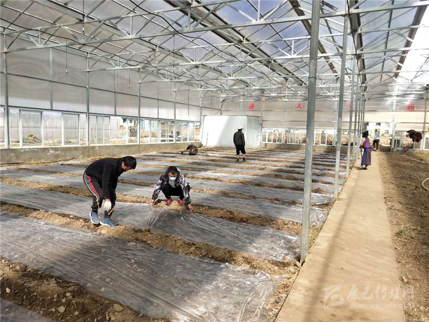 村民正在種植花卉。