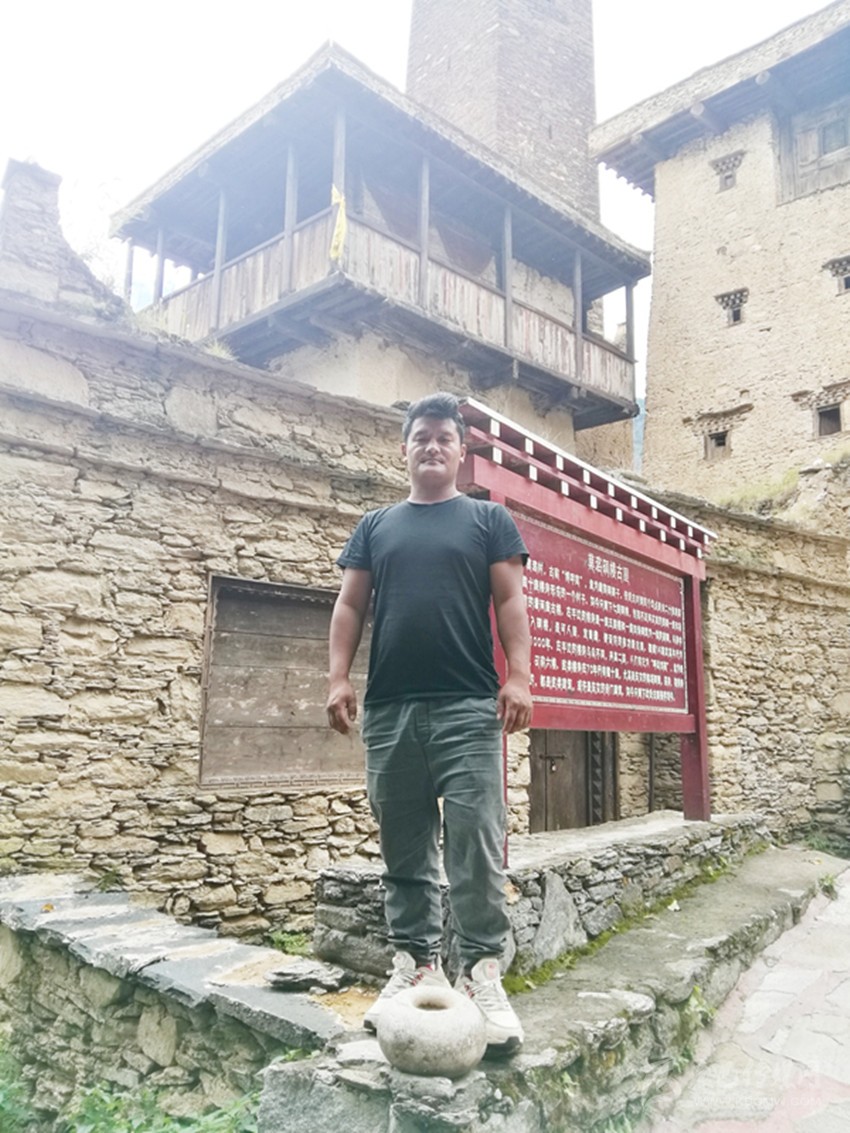 如今,莫洛村只剩下七座碉樓,其中包括殘碉和古樓。在該村1組28號,一座古樓和一座四角碉筑為一體的家碉是代表之一。從古樓可進(jìn)入碉樓,是可人居、宜畜藏、便設(shè)防的多功能古屋,該古屋是全村唯一保存至今的古建筑,也是記者一行此次采訪的“主角”。