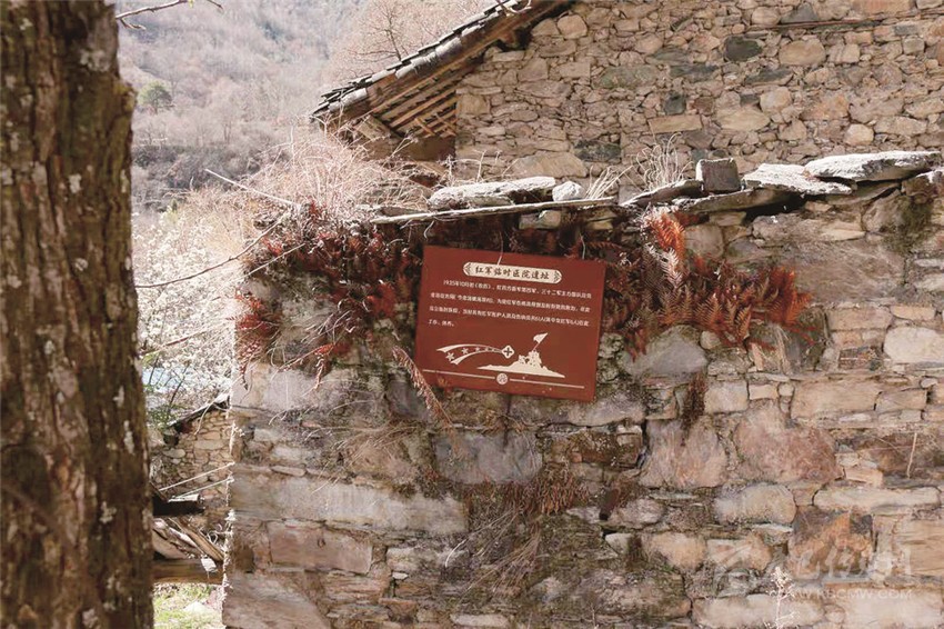 當(dāng)年,常年累月的戰(zhàn)役,讓紅四方面軍減員嚴(yán)重,亟待休整。在距離湯壩四里外的新聯(lián)下村趙家磨房附近,紅軍設(shè)立臨時醫(yī)院,將傷病員安置在此地養(yǎng)傷。如今,幾間草木掩映的殘破石屋正是當(dāng)年的紅軍臨時醫(yī)院,在歲月的侵蝕下,醫(yī)院遺址幾乎被摧毀殆盡。