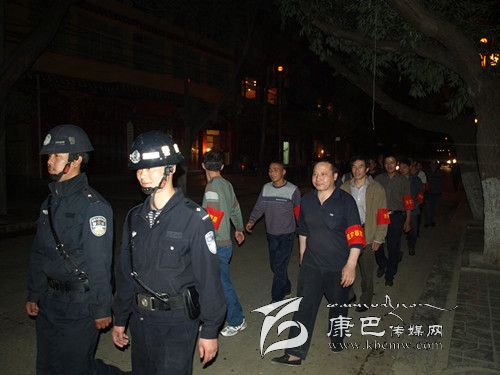 白玉警民巡查街道治安。記者 張濤攝