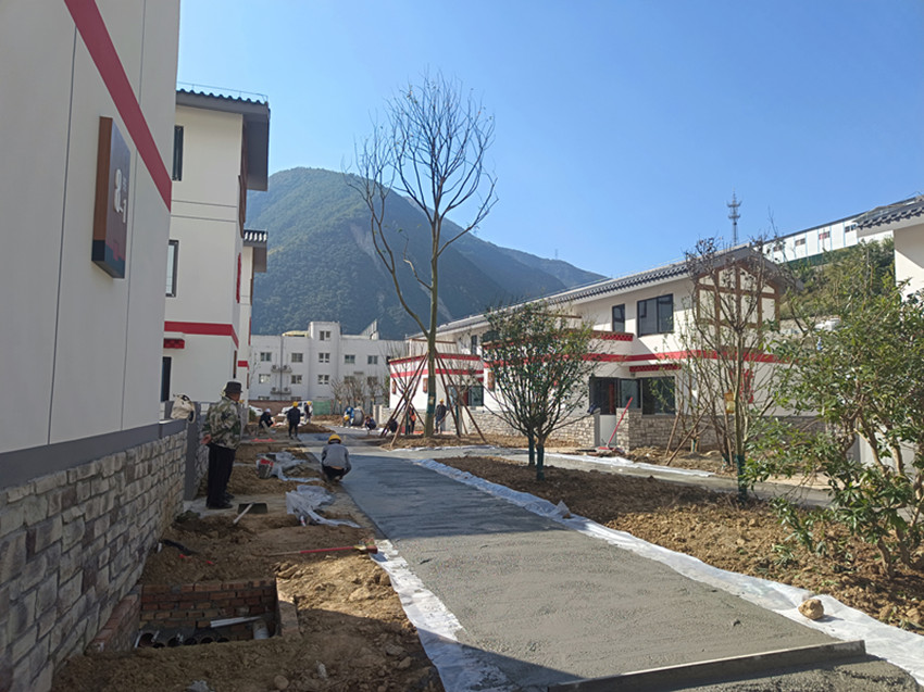 11月5日,記者走進(jìn)瀘定縣德威鎮(zhèn)奎武村“9·5”瀘定地震災(zāi)后重建集中安置點(diǎn),只見(jiàn)一幢幢繪有“如意結(jié)”和穿斗裝飾等瀘定傳統(tǒng)建筑元素以及“瀘定紅”“紅飄帶”等民族特色的安置房沿大渡河畔依次排開(kāi),一條條寬敞平整的水泥硬化道路將這些風(fēng)貌一致、戶型合理、結(jié)構(gòu)安全的安置房屋串聯(lián)起來(lái)。幾十名工人正在安置點(diǎn)內(nèi)忙碌,有的在鋪設(shè)路面、有的在栽種綠化樹(shù)、有的在搬運(yùn)廢渣……,拿到鑰匙的部分村民正在進(jìn)行室內(nèi)裝修,現(xiàn)場(chǎng)一派繁忙景象。