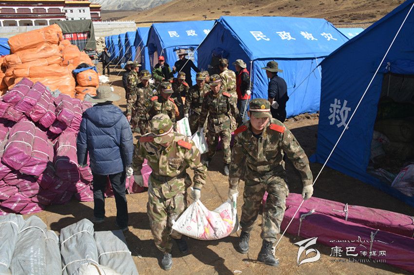 州森警支隊參謀長帶前指和康定中隊60人到達(dá)震中塔公鎮(zhèn)奪讓村和木雅祖慶學(xué)校。官兵看到校舍慘景和師生驚慌失措表情,忘記了奔波疲勞和自身安危,有序疏散30名師生、搶救學(xué)校2臺受損車輛,冒著零下近10度的低溫,連夜為師生搭建帳篷17頂、簡易廁所10個,參戰(zhàn)官兵一夜未睡奮戰(zhàn)至黎明。23日8時10分,參戰(zhàn)的森警官兵又奉命轉(zhuǎn)戰(zhàn)至瓦澤鄉(xiāng)魚子西1、2、3村,為藏牧民轉(zhuǎn)移牦牛等牲畜200余頭,從危房中搬運大米、青稞等糧食11.8噸,沙發(fā)、銅火爐、電視機(jī)等1680余件(套)。24日上午官兵又深入到瓦澤鄉(xiāng)麥巴村,為受災(zāi)群眾拆除危房2間、搬運危房內(nèi)貴重物品10余噸,下午,抗震救災(zāi)指揮部又緊急調(diào)參戰(zhàn)森警官兵為沙德鄉(xiāng)運送棉帳篷等救災(zāi)物資,支隊前指帶50人動用6臺車輛機(jī)動110公里到達(dá)沙德鄉(xiāng)政府,又連夜劃分四個行動小組為沙德鄉(xiāng)7個偏遠(yuǎn)村(組)將帳篷運送到位,官兵一夜未睡將10余頂棉帳篷依次搭建到位。25日上午,官兵又接到塔公鎮(zhèn)扎西寺僧尼告急,60名官兵顧不上吃飯,緊急出動運輸15頂棉帳篷,奮戰(zhàn)扎西寺5個安置點,至晚19時才搭建完畢,官兵就座運兵車?yán)锎蝽镄菡?6日上午,武警總部工作組看望慰問參戰(zhàn)一線官兵,官兵精神振作,按抗震救災(zāi)指揮部指示,60名官兵在聯(lián)指物資發(fā)放中心,搬運裝卸棉帳篷、棉大衣、棉被等越冬衣物和礦泉水、大米、面粉、蔬菜等生活物資68噸。目前,60名官兵仍奮戰(zhàn)一線,雅江大隊、道孚大隊部分官兵在各自轄區(qū)展開震后自救互救行動。