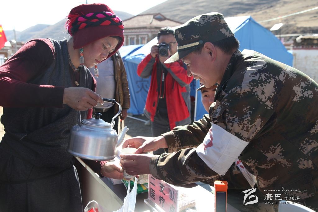 一位媒體同仁在接到她們送上的酥油茶時說:“這酥油茶特別香,熱乎乎的,真的很好喝,從嘴里暖到了心里。”四川部隊(duì)武警二支隊(duì)的軍醫(yī)陳海波告訴記者:“今天早上就看見她們在這里送酥油茶,她們一直穿梭在人群里,我們也拿到了她們送上的酥油茶。心里特別的感動,有這樣的農(nóng)牧民,我們?yōu)榱怂麄冊倏嘣倮垡灿X得值得。”