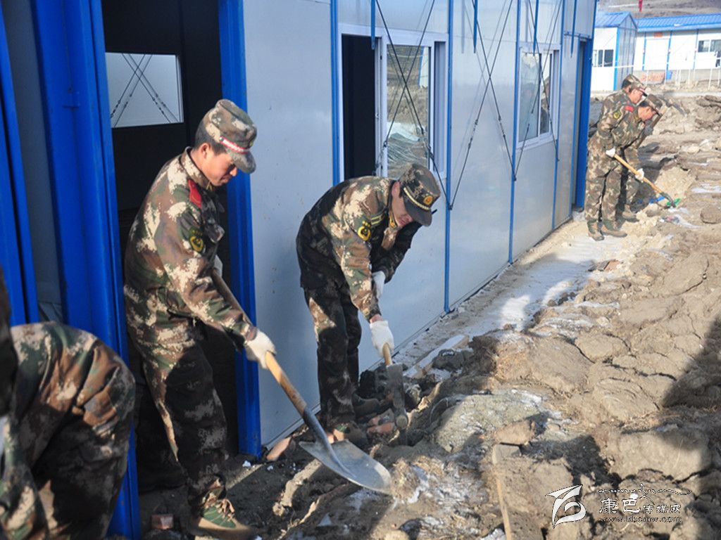 堅(jiān)守在康定“11.22”地震重災(zāi)區(qū)塔公鎮(zhèn)的武警四川總隊(duì)二支隊(duì)抗震救災(zāi)官兵,克服高寒缺氧,全力投入板房學(xué)校搭建,官兵們?cè)谄D苦的環(huán)境中度過了2015年的第一天。