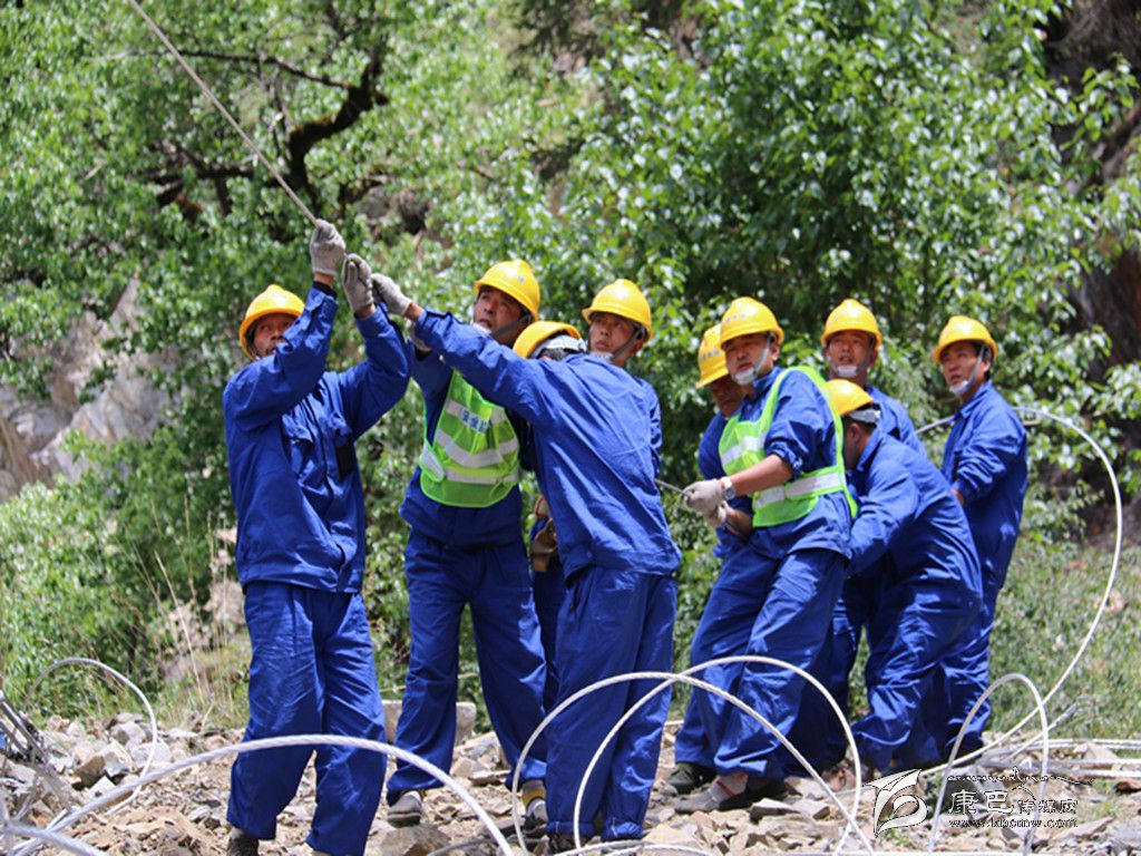“辛苦”二字同樣印在工程管理者的工作中。手握對(duì)講機(jī)、身穿工裝的工程項(xiàng)目負(fù)責(zé)人龍森,此刻正頂著烈日在工地對(duì)一位工人叮囑施工事項(xiàng)。龍森是甘孜電力建設(shè)有限公司的工程技術(shù)人員,他對(duì)工程管理非常嚴(yán)格,如果工程進(jìn)度稍慢點(diǎn),他就會(huì)焦急萬(wàn)分??擅棵靠匆?jiàn)工人們頂著烈日、冒著風(fēng)雨加班加點(diǎn)趕工程進(jìn)度時(shí),龍森的心里也特別不是滋味。對(duì)這項(xiàng)工程的不易龍森深有體會(huì)。架桿初期,有些路段山坡土質(zhì)松軟,一遇到下雨就容易滑坡塌方,為了不影響工程進(jìn)度,龍森和工友們常常要一邊做“修路工”的工作一邊做“架桿工”的工作。龍森說(shuō):“最苦的是,這里有些路段車輛根本無(wú)法進(jìn)入,一根電桿重1.2噸,要靠十多名工人用繩索和木頭抬進(jìn)工地。德差鄉(xiāng)距離縣上有170多公里,單程就要4小時(shí),工程緊的時(shí)候一周要往返縣上兩三趟。還記得有一次車胎在海拔近5000米的呷布科山上爆了,山上手機(jī)沒(méi)有信號(hào),得不到救援,餓了我們就在山上吃點(diǎn)自帶的干糧,等了近半天才等到一位騎摩托車的老鄉(xiāng)路過(guò),回到休息地的時(shí)候已經(jīng)是半夜兩點(diǎn)多了。”說(shuō)到這里,龍森無(wú)奈地?fù)u了搖頭。世上無(wú)難事,只怕有心人。龍森說(shuō),這段路線的電桿已經(jīng)全部立起來(lái)了,現(xiàn)在只剩下架線的工作。一定要搶在月底之前為這兩個(gè)村通上電。