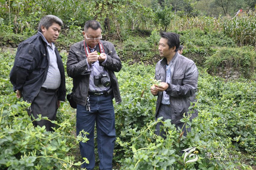 專家查看藥材種植情況。