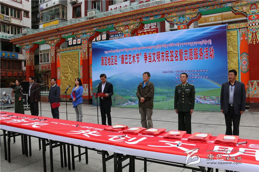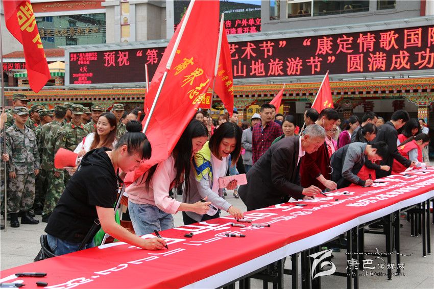 本網(wǎng)訊(記者 宋志勇 文/圖)8月5日,由州文明辦、州直工委、康定市文明辦共同舉行的康定地區(qū)迎“康巴藝術(shù)節(jié)”爭當(dāng)文明市民簽名暨志愿服務(wù)活動在情歌廣場正式拉開帷幕。來自康定地區(qū)社會各界的青年志愿者服務(wù)隊、巾幗志愿者服務(wù)隊、工商界志愿者服務(wù)隊、衛(wèi)生系統(tǒng)志愿者、駐康部隊志愿者服務(wù)隊、州級機關(guān)志愿者服務(wù)隊、市直機關(guān)志愿服務(wù)隊、環(huán)衛(wèi)志愿者服務(wù)隊等共計1000余人參與。