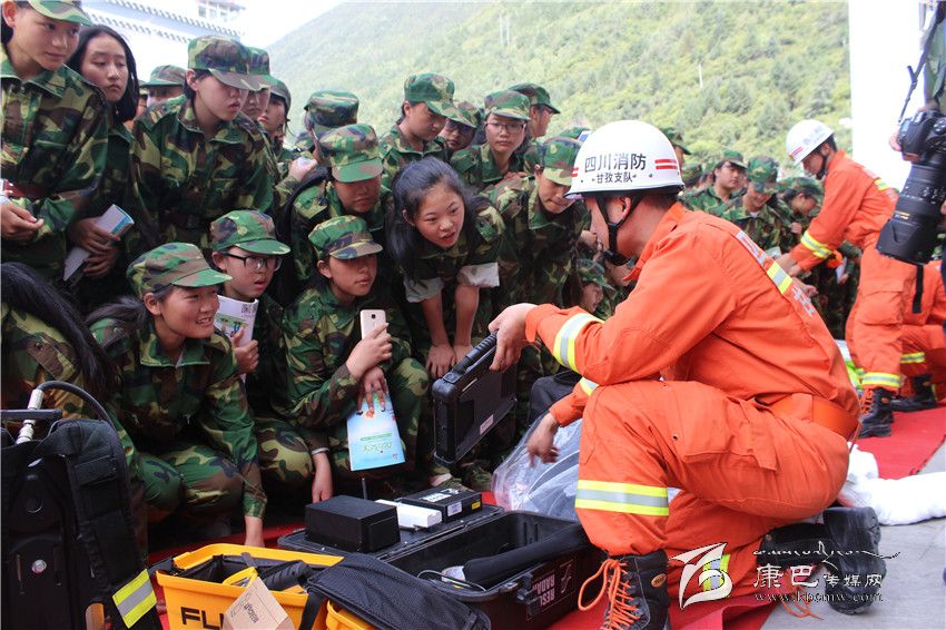 本網(wǎng)訊(龍培民)8月26日,州消防支隊(duì)首次在康定中學(xué)舉辦“消防進(jìn)軍訓(xùn)”實(shí)踐操課演練活動(dòng)。通過支隊(duì)官兵的講解和演示,康定中學(xué)正在參加軍訓(xùn)的1000余名高一新生對(duì)消防安全工作有了進(jìn)一步的了解和認(rèn)識(shí),并通過試穿消防戰(zhàn)斗服,現(xiàn)場體驗(yàn)多項(xiàng)消防訓(xùn)練內(nèi)容,掌握了一定的消防安全基本知識(shí)和技能,增強(qiáng)了消防安全意識(shí)。 圖為消防官兵正在向?qū)W生講解消防器材的使用方法。