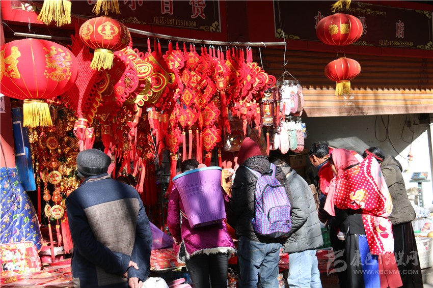 在理塘縣各個貿(mào)易市場,紅燈籠、春聯(lián)、“?!弊值裙?jié)日飾品也已擺上街頭,氣氛祥和又喜慶。同時,藏族群眾也迎來采購的繁忙時刻,人們紛紛走上街頭,挑選吃、穿、用、玩的年貨,過年的氣氛越來越濃了。 (葉強平)