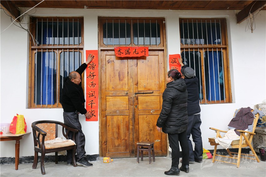 貼完自家的春聯(lián),老陳又到鄰居家?guī)兔N,見到鄰居蘭大爺家準(zhǔn)備的春聯(lián)與街上賣的不一樣,是手寫春聯(lián)。老陳一打聽才知道,原來海螺溝管理局宣教群團(tuán)處正開展“迎新春,送春聯(lián)”活動,這些手寫春聯(lián)正是蘭大爺特意去活動現(xiàn)場免費(fèi)領(lǐng)取的??粗鴷◥酆谜啐堬w鳳舞的字體,老陳非常喜歡,轉(zhuǎn)頭對妻子說:“過兩天咱們也去要兩幅手寫春聯(lián)回來”。