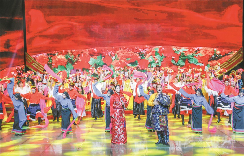 歌曲聯(lián)唱《百花爭(zhēng)艷》,是演出中第一個(gè)讓觀眾們大呼過癮的節(jié)目,年僅5歲的澤仁拉姆用一首藏族原生態(tài)歌曲《故鄉(xiāng)》,讓全場(chǎng)觀眾耳目一新。緊隨而來的藏族山歌《家鄉(xiāng)美》、漢族歌曲《和諧大家園》、回族歌曲《花兒與少年》、彝族歌曲《 尼雨尼杰》將音樂的魅力逐級(jí)顯現(xiàn),最后在經(jīng)典歌曲《愛我中華》中急速升華。6首歌曲風(fēng)格各異,卻又一氣呵成,不僅集中展示了我州藏、漢、回、彝四個(gè)民族的藝術(shù)風(fēng)采,還生動(dòng)展現(xiàn)了我州各族人民其樂融融、團(tuán)結(jié)進(jìn)步的和諧面貌。