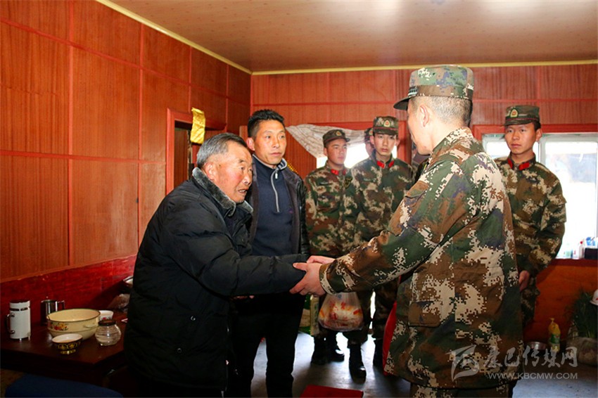 在困難戶拉姆老人家中,武警官兵為其送上了慰問(wèn)金和慰問(wèn)品。老人拉住官兵的手,不停地說(shuō):“感謝金珠瑪米!”